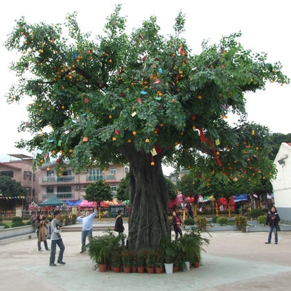 As plastic trees go, the fake strangler fig in Fong Ma Po village in Hong Kong’s Lam Tsuen valley is a pretty good replica. And very popular. During the Lunar New Year festivities, people come in their tens of thousands — from across Hong Kong and beyond — hoping it will fulfil their wishes.
